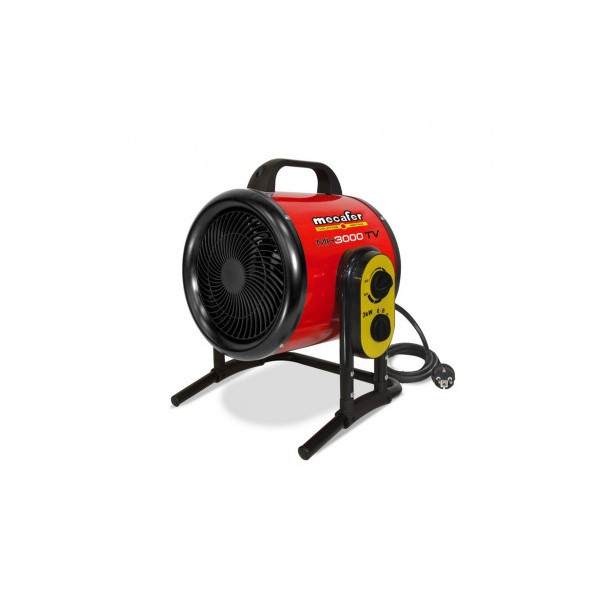 MH3000TV : Chauffage électrique 3000W - Mode de fonctionnement Résistance inox à ailettes + ventilateur Turbo - Capacité de chauffe 40m2 - Volume de Chauffe 420 m3/h - Thermostat réglable en continu - Fonction Ventilateur - Protection contre surchauffe thermostatique - Marque MECAFER - Garantie 2 ans