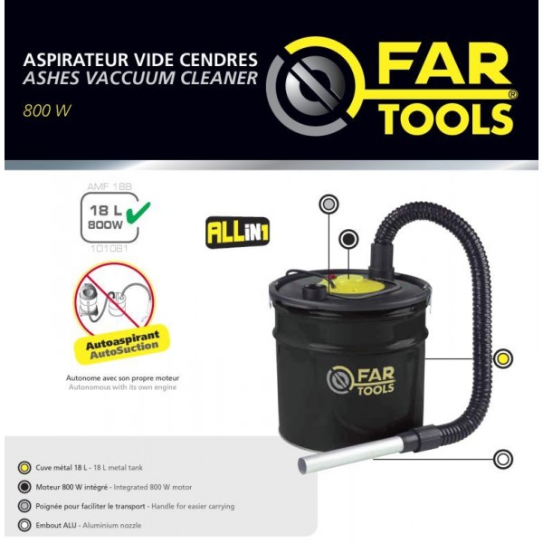 ASPIRATEUR VIDE CENDRES 800 WATTS 18 LITRES