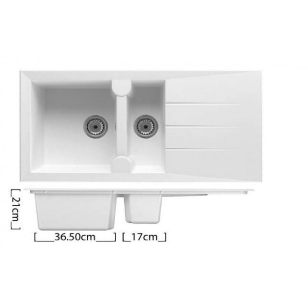 EVIER ALINEO 1 BAC 1/2 - 1 EGOUTTOIR GRANIT BLANC EN RESINE