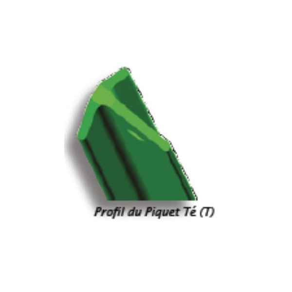 Le piquet té, scellé au sol, est employé pour la pose de grillage en rouleaux ; Il sert de support au fil de tension fixé horizontalement dans les trous des poteaux, puis au grillage qui est ligaturé avec des agrafes ou du fil d’attache.