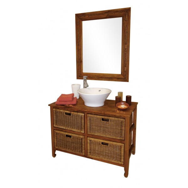 HUILE DE TECK. UN PLAN VASQUE BOL A POSER. UN MIROIR TECK MASSIF, ET