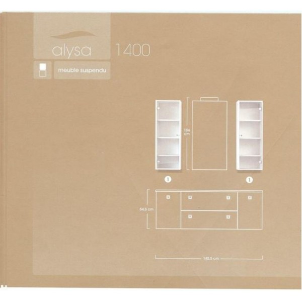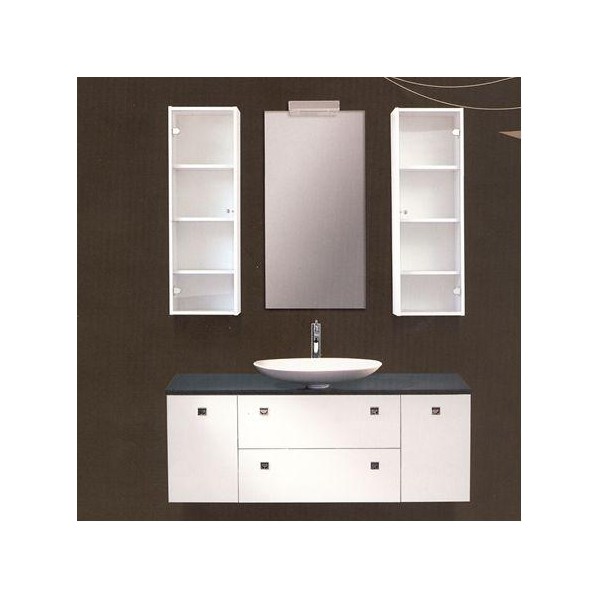 MEUBLE 140 BLANC BRILLANT, PLAN DE TOILETTE ANTHRACITE AVEC MIROIR