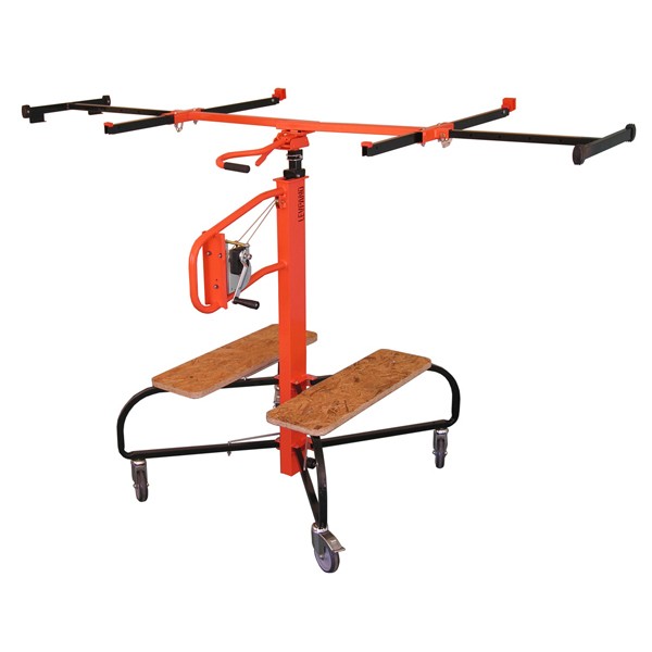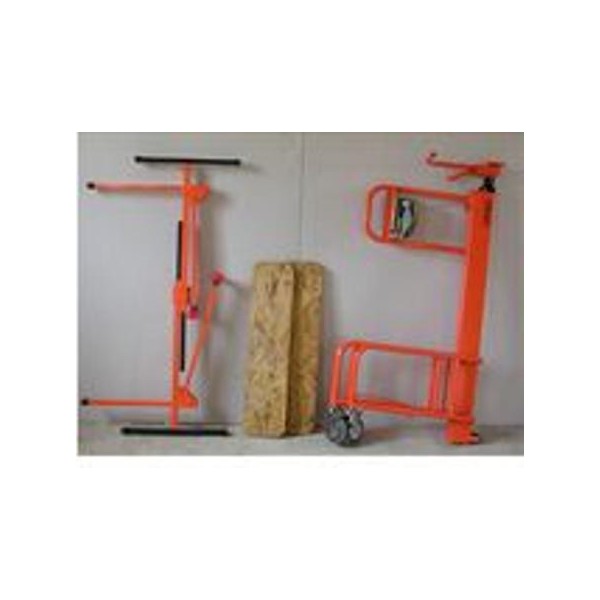 Système de sécurité constitué de 2 câbles : 1 câble de travail et 1 câble de sécurité anti-chute (breveté). Poignée de basculement des bras et tête ergonomique (breveté). Rallonge intégrée à la tête pour une pose jusqu'à 4m à l'horizontale. Indexation tous les 10cm (breveté). Rotation de la tête et les bras sur 360°. 2 plateformes de travail pour la fixation de la plaque : 0.83x0.25m. Sabot escamotable positionné sur bras central long pour plaques de largeur 0, 60m , 0.90m et 1.20m. Conforme à la norme CE, et à l’article L233-5 du code du travail. Contrôlé par un organisme agréé : SOCOTEC. Contrôles et tests de charges effectués par notre service qualité. Peinture époxy. Equipée d’une poignée de basculement. Hauteur de chargement pour pose horizontale : 0,82 m. Hauteur minimale plaque horizontale : 1.40 m. Hauteur maximale de pose plaque horizontale : 4 m sans rallonge. Ouverture maxi des 2 bras de bout : 3,06 m. Charge utile : 75 kg. Entraînement de la colonne par câble avec système de sécurité anti-chute grâce au 2ème câble (breveté). Treuil anti-retour fixé sur la poignée de manœuvre permettant un très bon guidage de l’appareil. 4 roues dont 2 équipées d’un système de blocage. Poids de l’appareil : 46 kg. |