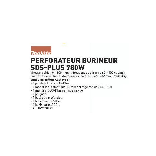 KIT PERFORATEUR HR2470TX1 SDS-PLUS 780W, LE KIT