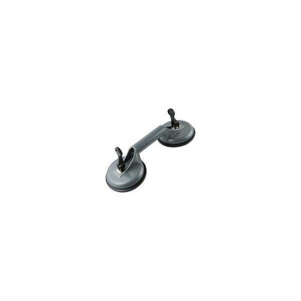 Double tête en caoutchouc pour une capacité élevé de 80 kg. Verrouillage par 2 leviers oscillants, pour une grande fiabilité. UTILISATION Ventouse de transport double. Permet de lever les grands carreaux avec facilité. Pour déplacer des menuiseries vitrées (fenêtres, portes, baies) des vitres, glaces et miroirs, ainsi que des panneaux lisses et surfaces planes. Crée une poignée pour transporter les appareils à surface lisse sans prise (machine à laver, frigidaire) dont le poids n'excède pas 80kg. Idéal pour le transport d'objets lourds ayant peu de prise. PERFORMANCE Adhérence totale, même avec de la poussière. Capacité : 80kg Diamètre de chaque ventouse : 120mm CARACTERISTIQUES Base en aluminium Finition peinte grise Semelles en caoutchouc Longueur totale : 330mm