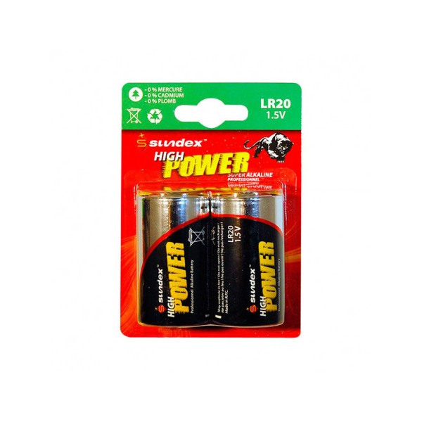 PILE LR20 SUPER ALCALINE SUNDEX PACK2 LE PAQUET DE 2 PILES