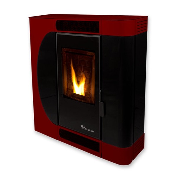 Poêle à granulés de bois CIES - Habillage acier bordeaux - Programmateur hebdomadaire (démarrage automatique ou extinction) - Thermostat d'ambiance - Télécommande - Capacité de la trémie : 20 kg - Régulation électronique - Raccordement arrière ou dessus Ø 80 mm.